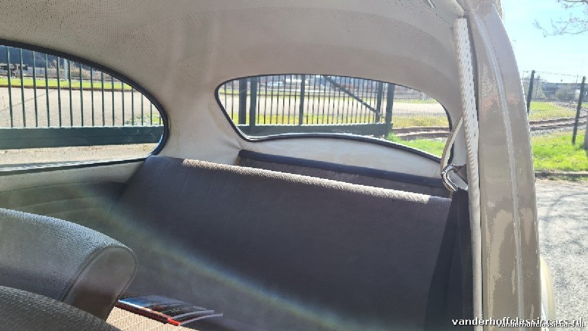 La Coccinelle présente des flancs blancs sur les pneus avec un anneau chromé. Le pare-brise a été remplacé une fois en raison de rayures et est légèrement teinté. Les pneus sont des classiques de sprint Vredestein de taille 155x15.