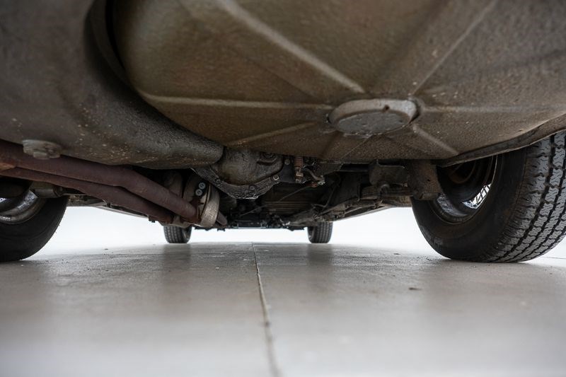 Onderzijde: Zeer vuil met vetsporen, oppervlakkige roest, laswerk aan de bodem, uitlaat oud